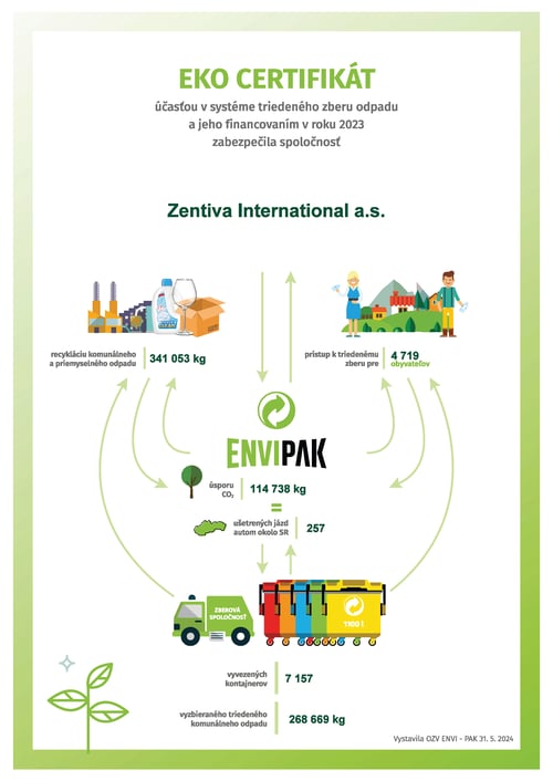 Spoločnosť Zentiva International a.s., účasťou v systéme zberu, zhodnocovania a recyklácie odpadov z obalov za rok 2023 opäť prispela k úspore emisií skleníkových plynov.