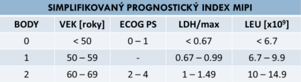 Zdroj: HOSTER, E., ROSENWALD, A., BERGER, F., et al. 2016. Prognostic value of Ki-67 index, cytology, and growth pattern in mantle-cell lymphoma: results from randomized trials of the European mantle cell lymphoma network. In Journal of Clinical Oncology. 2016, roč. 34, č. 12, s. 1386−1394.