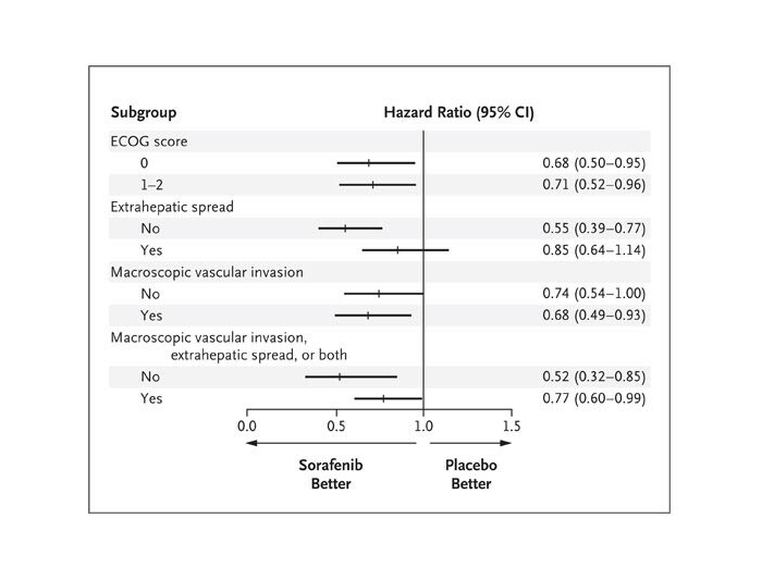 3. Llovet JM, Ricci S, Mazzaferro V, et al. Sorafenib in advanced hepatocelullar carcinoma. New Engl J of Med; 2008, 359(4):378-390.